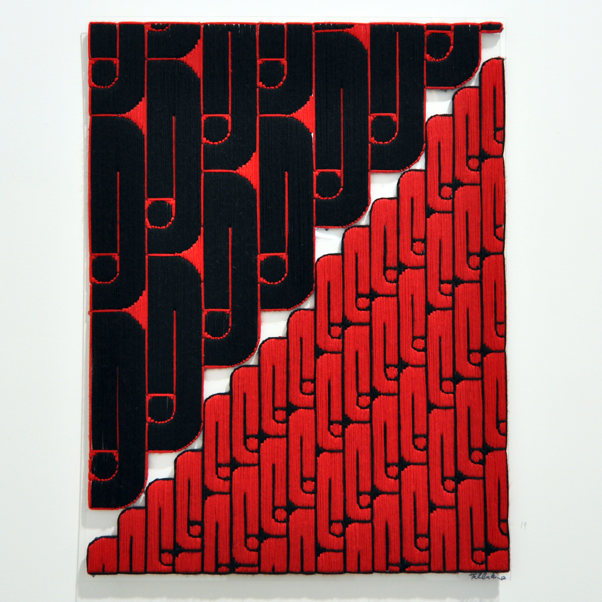 This work is made by transferring a hand drawn pattern on to perspex. The stitching points are then hand drilled into the perspex to allow the pattern to be sewn through. This is a long and reflective process that was a welcome distraction during the lockdown.