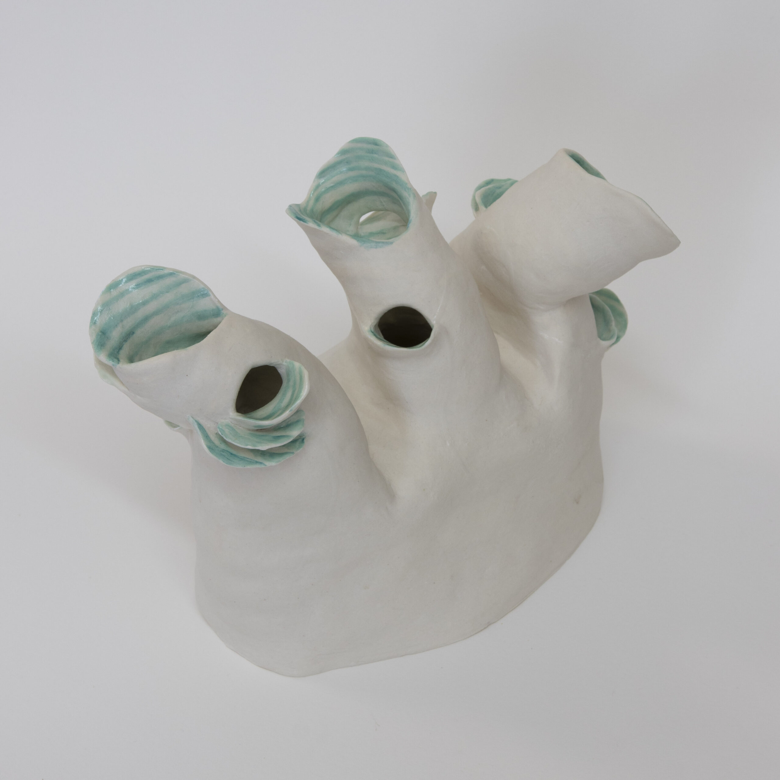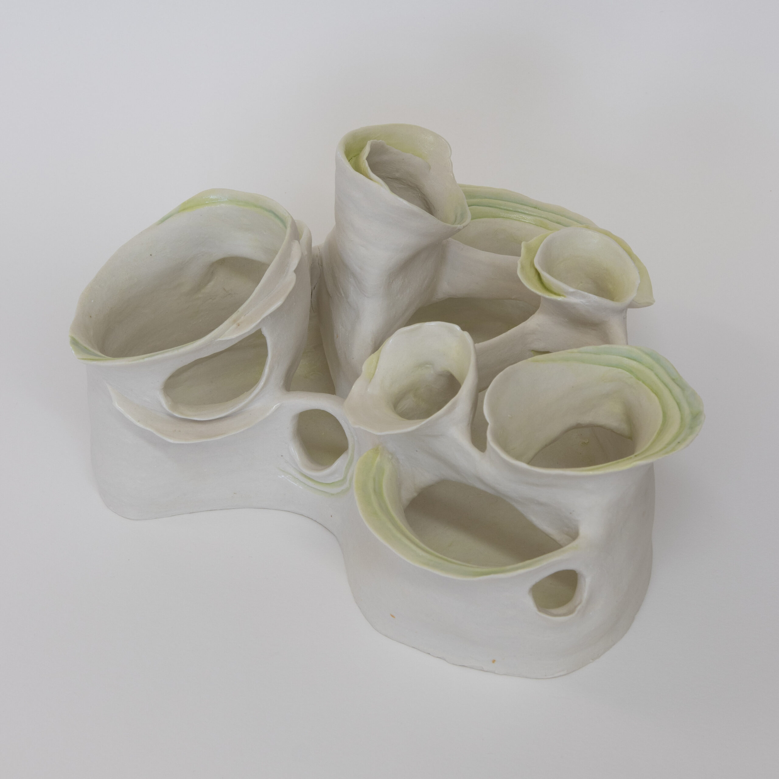 Certainly the early ones were intended to be vases – one of the first ones sits in my daughter’s room. But I’m not terribly interested in functionality, so they became more and more sculptural. I’d start with a base shape, then coil-build the porcelain from there. I allowed the plasticity of the porcelain to inform the shapes – it’s a bit like sculpting with toothpaste. So I was as much responding to the material as anything. Toward the end I let go of even the base, and just let the coils build up in whatever way.