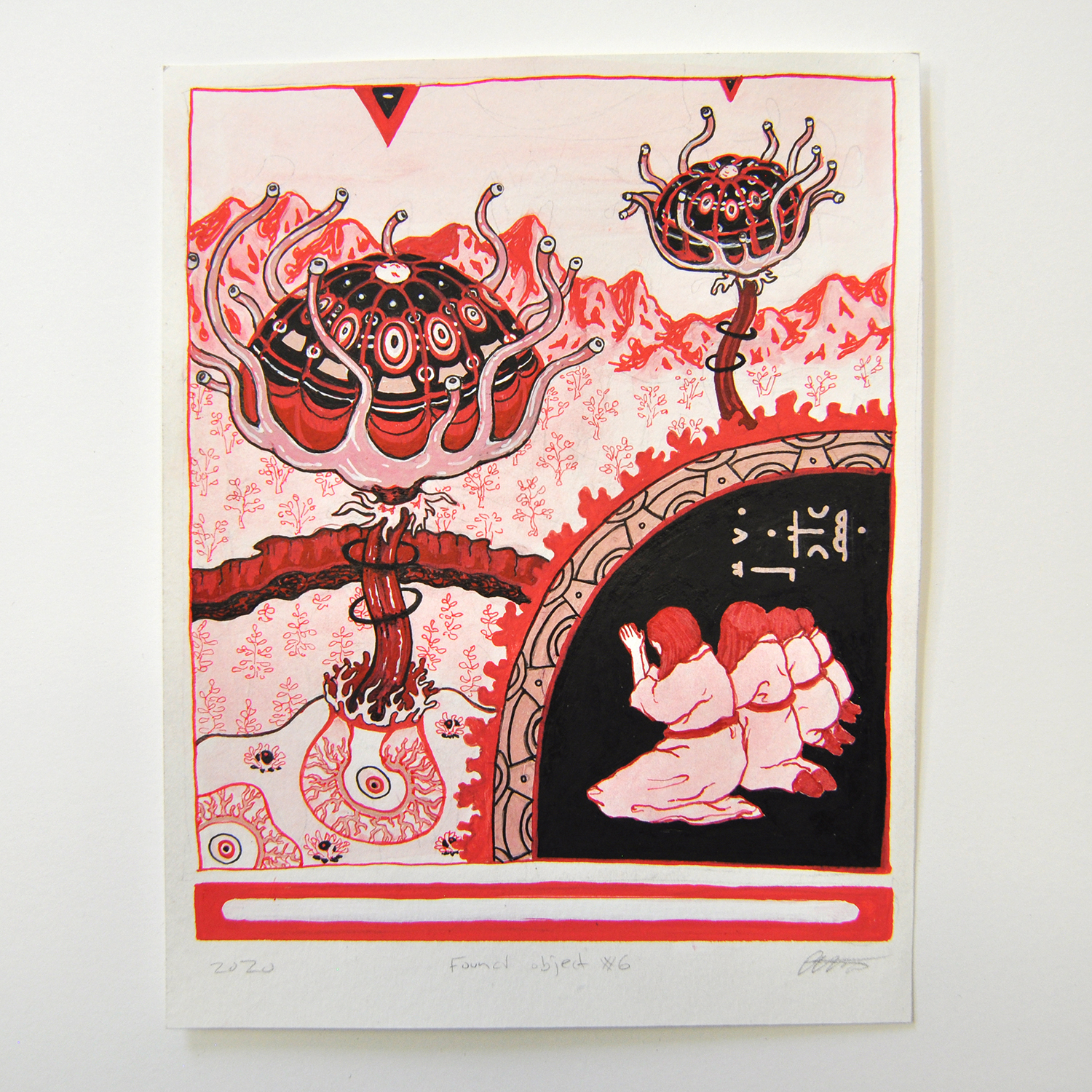 ‘Found object #6’, Christiane Shortal, gouache, acrylic & pen on paper, 185x145mm, 2020