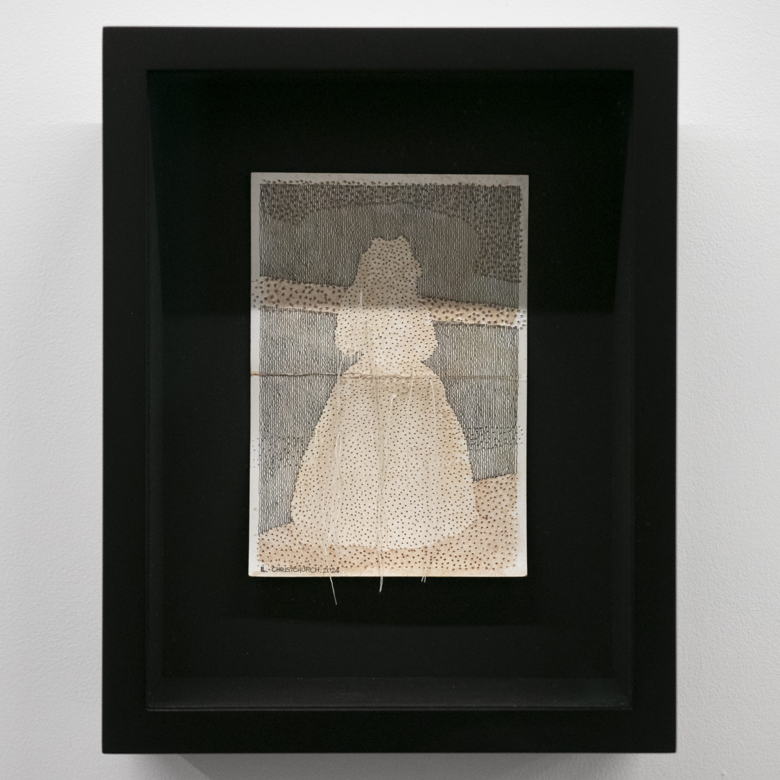 Untitled First Holy Communion Ivan Lupi, pigment liner, watercolour and thread on antique pierced family photograph (framed), 146x100mm, 2024