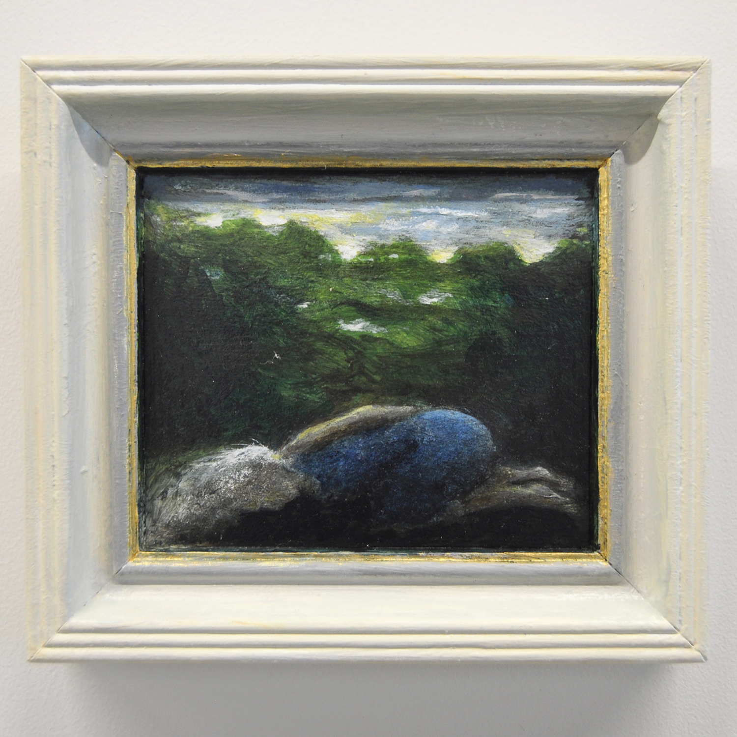 ‘Burying the Poet’, Kathryn Madill, framed acrylic on board, 121x161mm, 2020