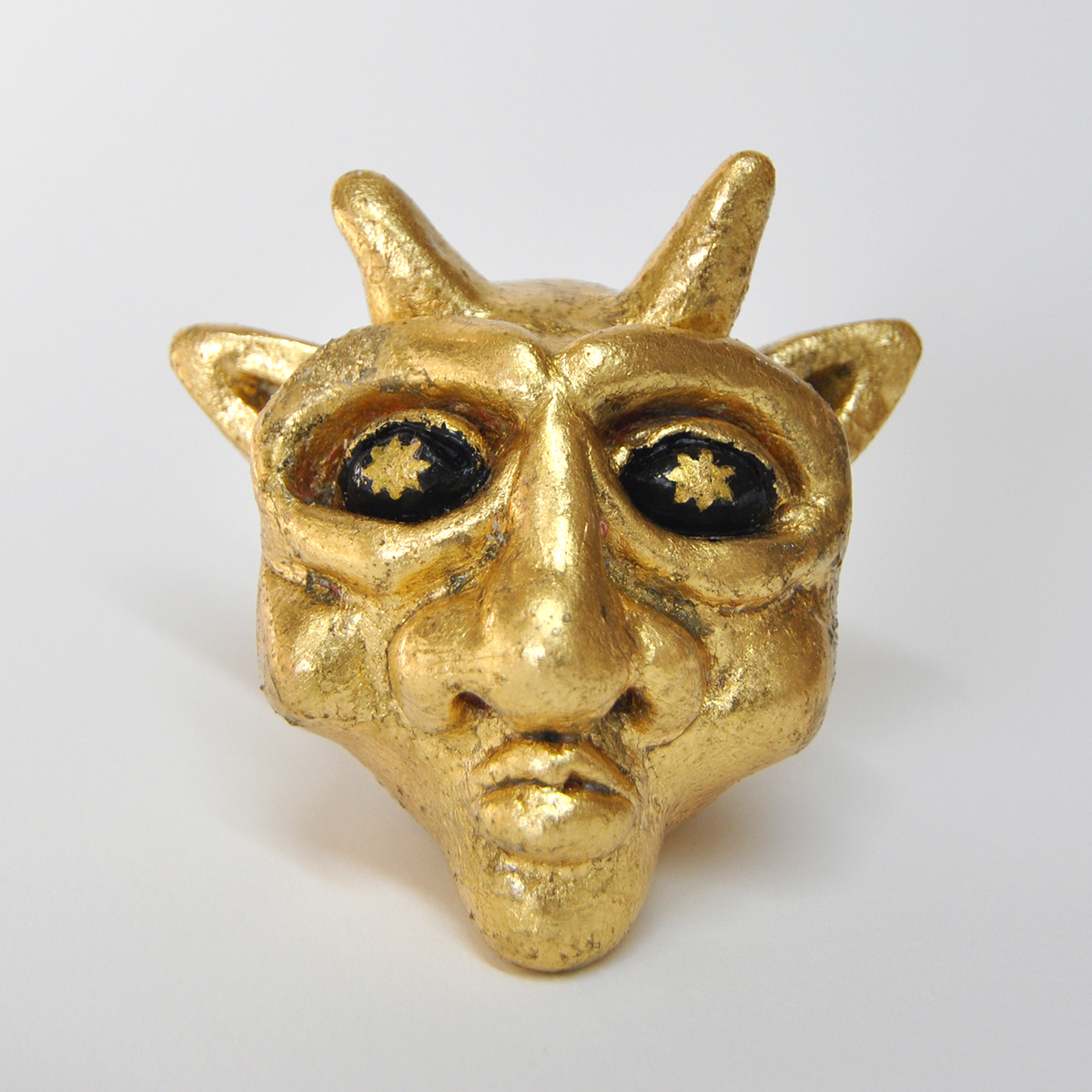 Front and Back, polymer clay, acrylic paint, gold leaf, glaze, 85x95x75mm, 2023