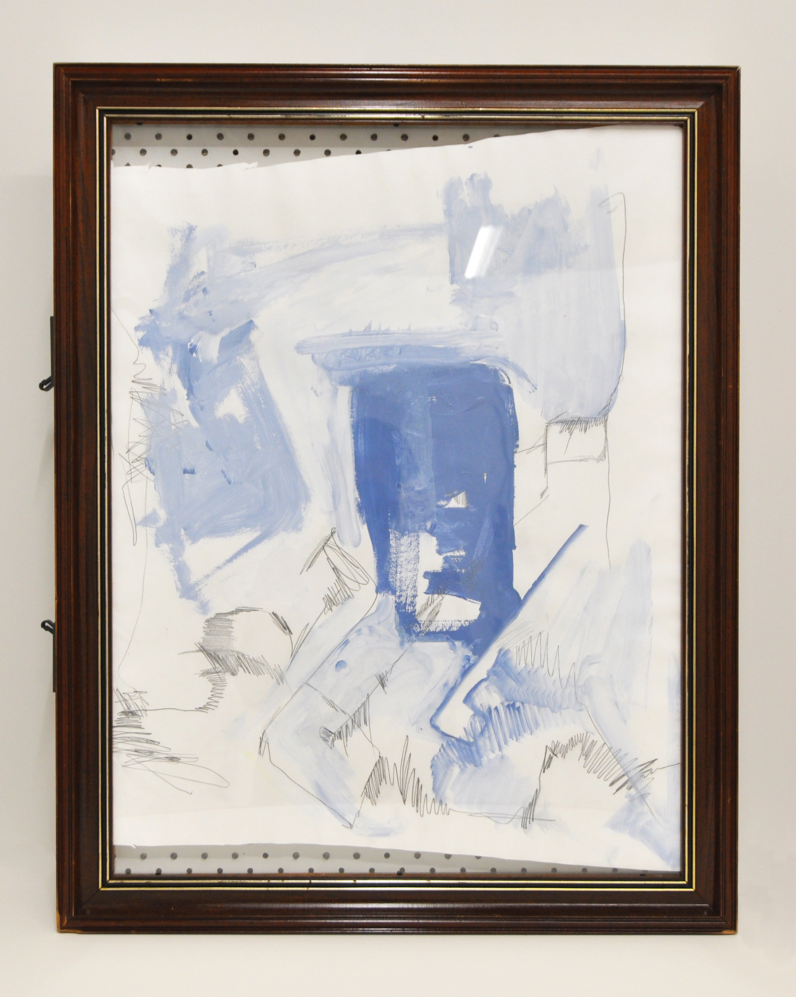 Lacking surfaces and wall space I lay the painting at my feet.