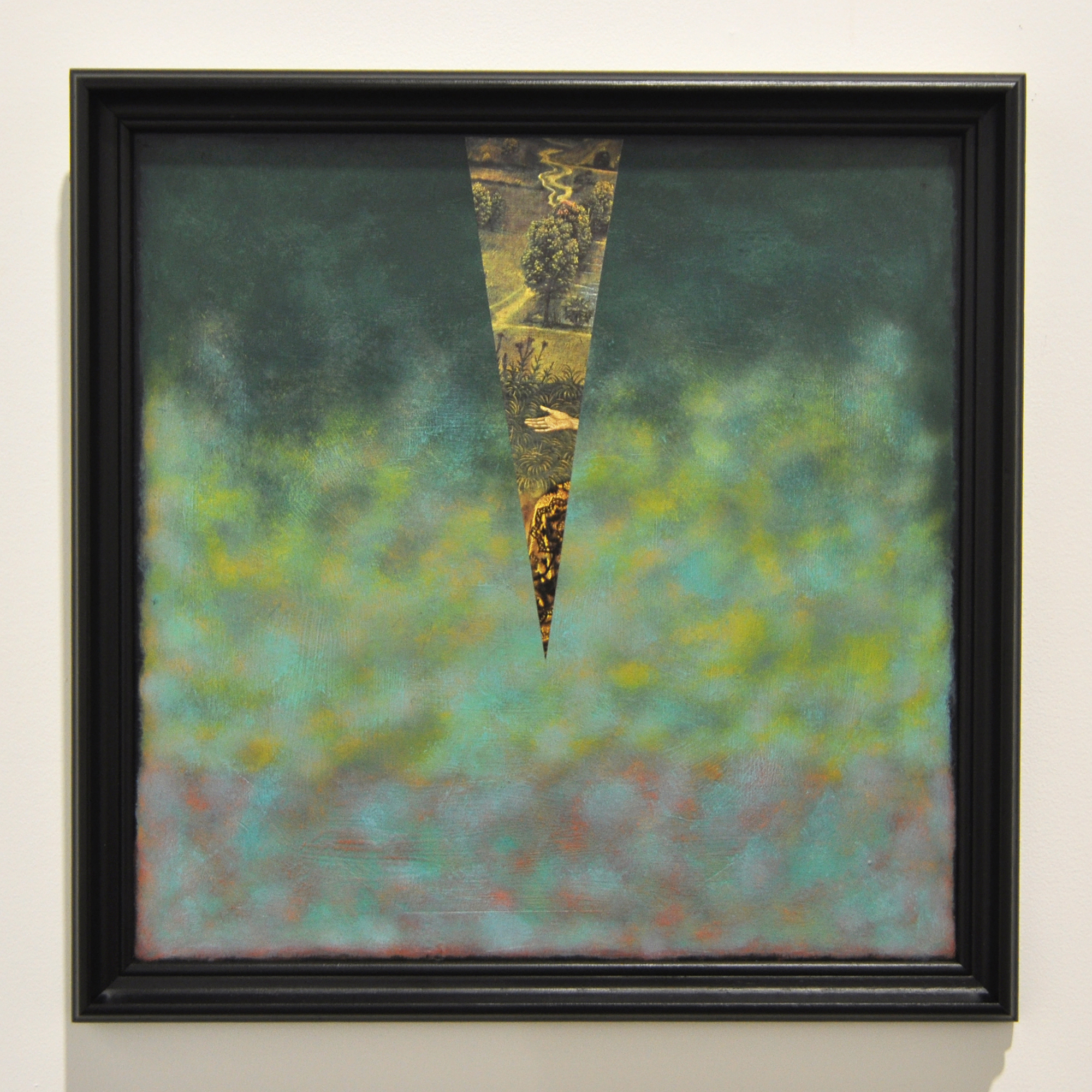 ‘Funereal Owlblood (Invertiert Altarbild)’, Nick Harte & Eve Barlow, acrylic, gesso, iridescent medium, solvent and paper on wood, 425x425mm, 2020, $1500