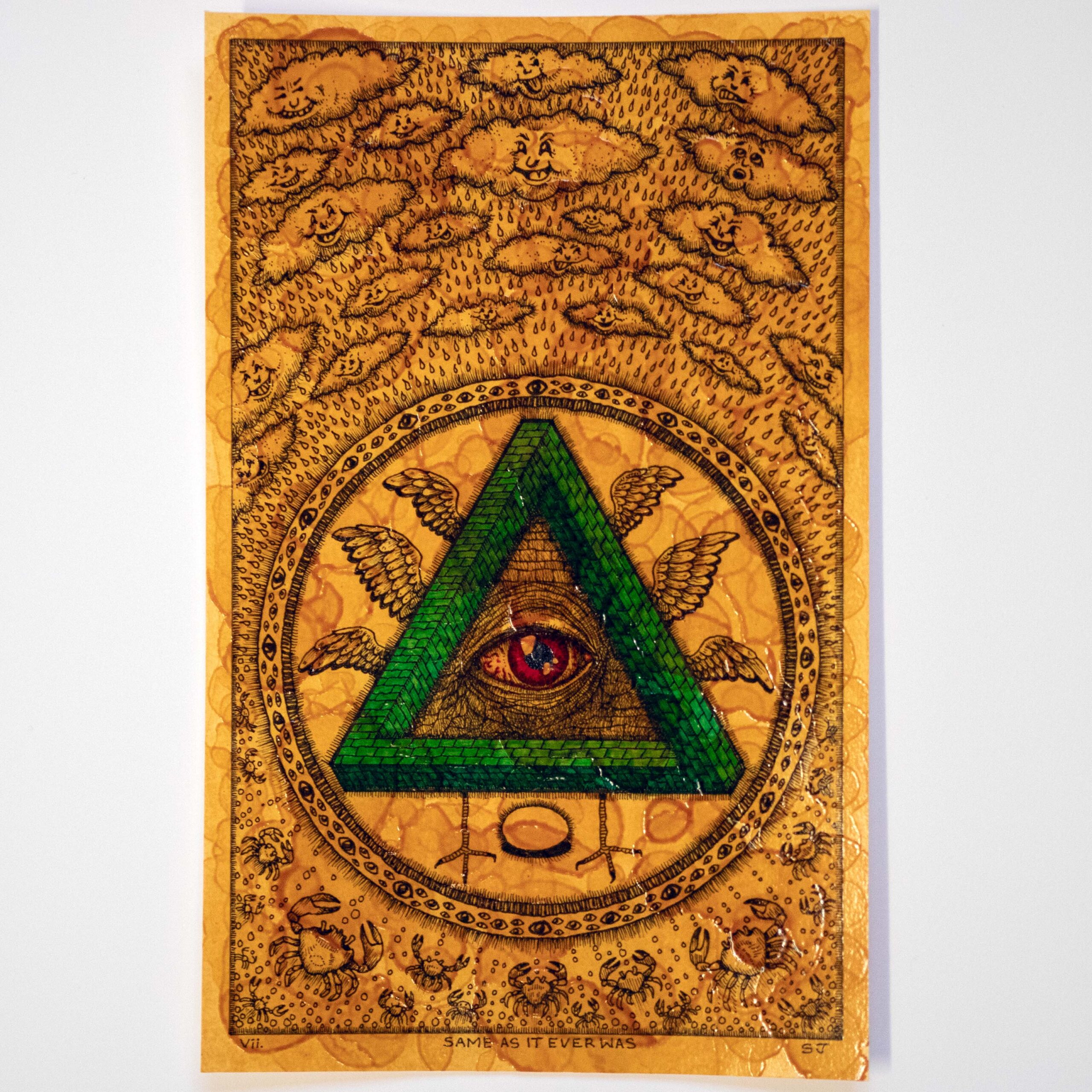 For those of us who aren’t witches or into the occult, horror media is where we might typically encounter such presentations of symbols, creatures and macabre. I suppose because they present the unknown. But those things typically are signifiers for something. For example, an ouroboros and scarab both can represent the eternal cycle of birth, death and rebirth, and an eye in a triangle can represent the all seeing eye of God. Are you interested in these meanings? Are such ideas expressed through art an area of curiosity or study for you?