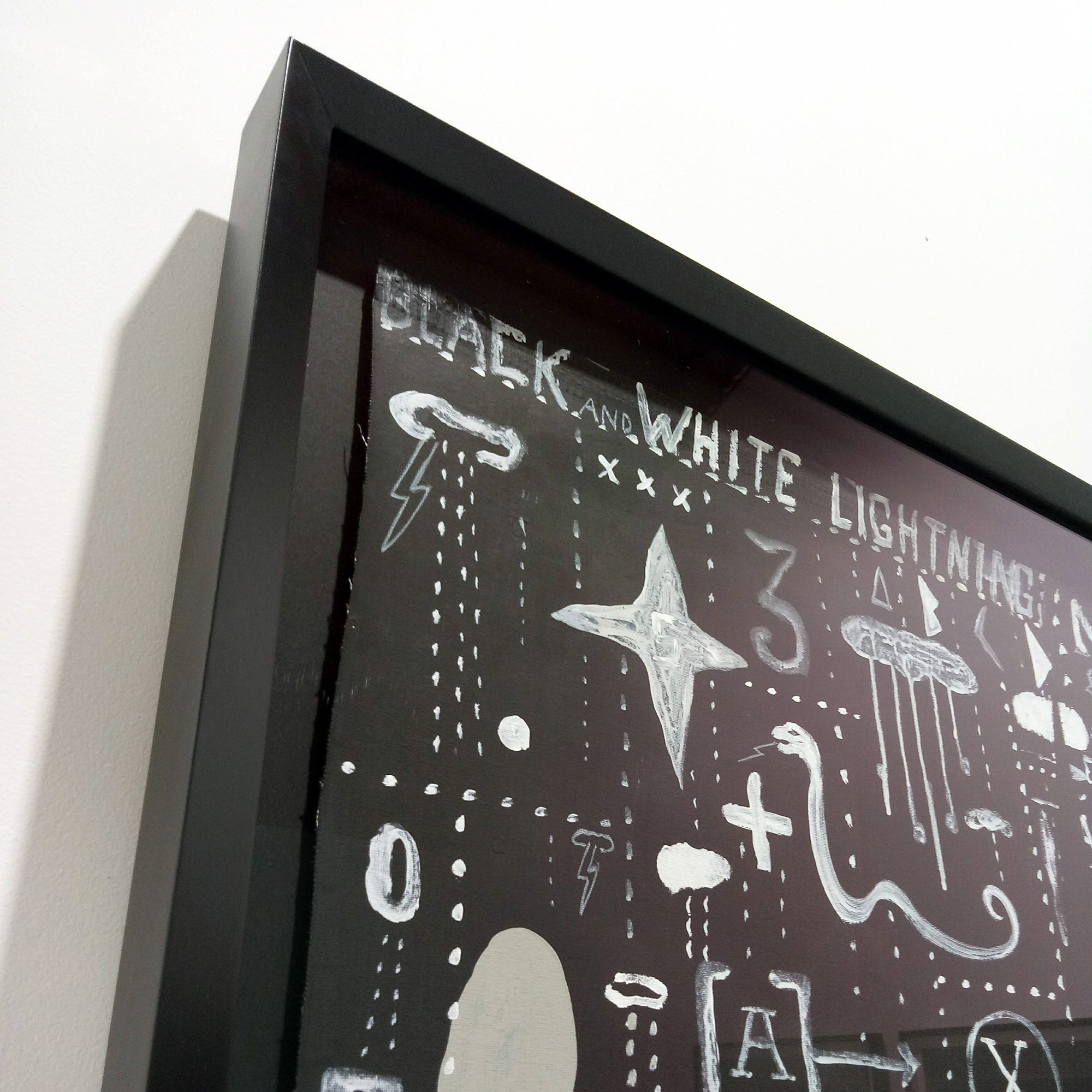 Example of the clarity that can be achieved with museum grade glass, here seen on ‘Black and White Lightening’, 2008 (detail) by Tony de Lautour which we framed for a client